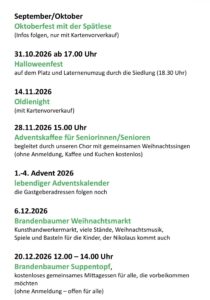 von Andrea Stachel10.10.2023 um 18:30 Uhr im Gemeinschaftshaus Brandenbaum – Präventionsveranstaltung des Runden Tischs Marli und des Kleinsiedler-Vereins Brandenbaum - Oktoberfest 2023